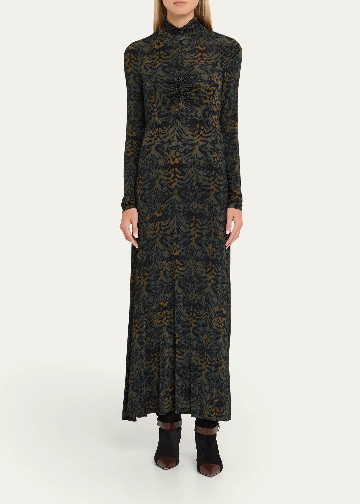 ULLA JOHNSON Koa Ruched Jersey Turtleneck Maxi Dress - Desert Jasper