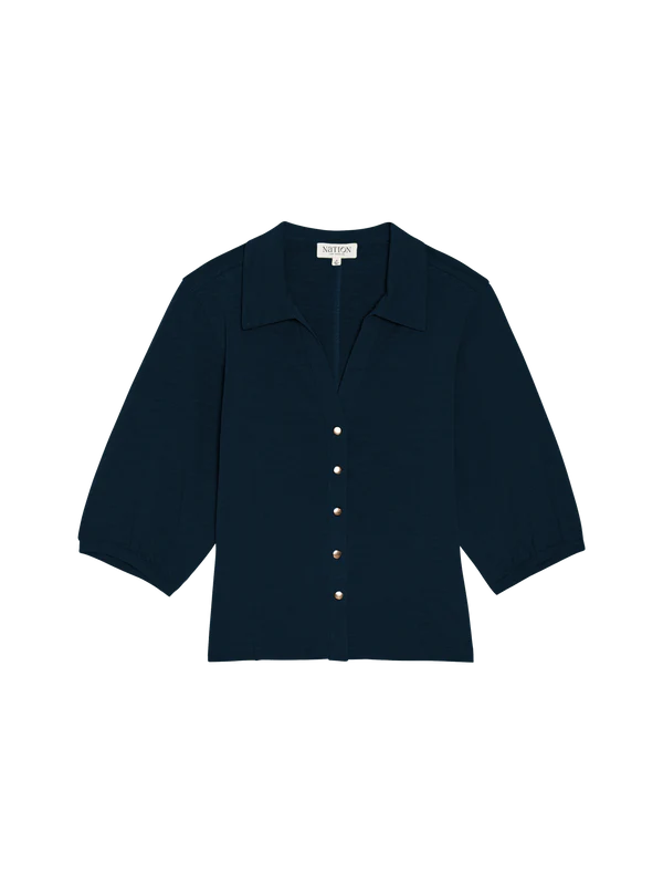 The Shannon Top is crafted of soft jersey that drapes effortlessly while keeping its shape. Gold snaps add polish, and balloon sleeves bring just the right volume.